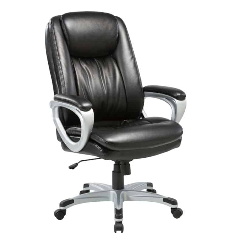 Swivel & tilt mechanism with 1 position lock Gas height adjuster PU arm rests with bonded leather padding 5* coated silver base Bonded Leather upholstery