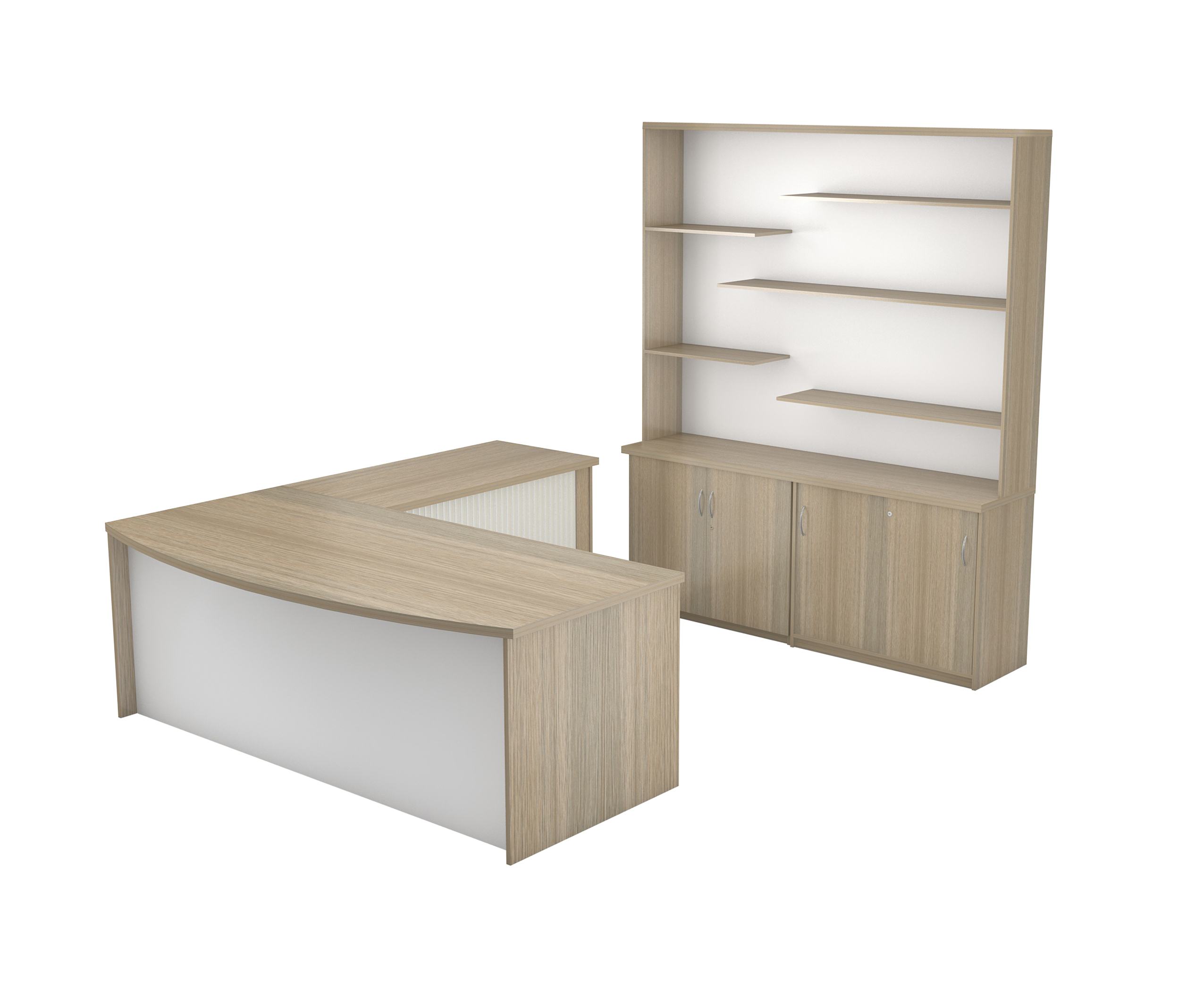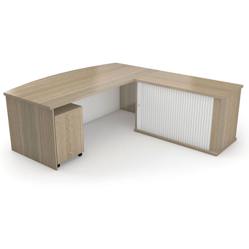The Miami Executive Office Desk is available in 1800mm & 2000mm with a full modesty panel, roller door side cabinet and mobile pedestal with drawers.