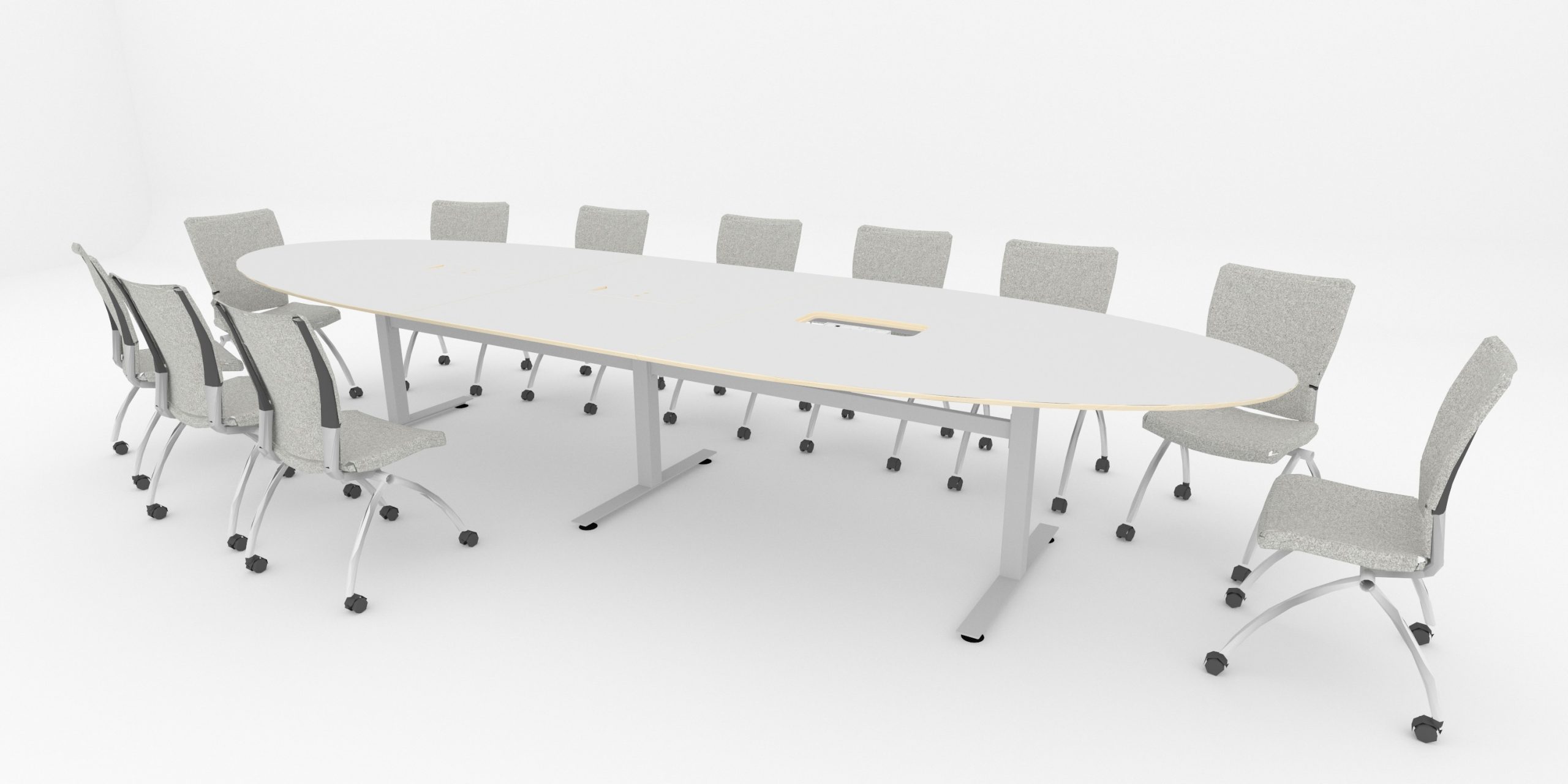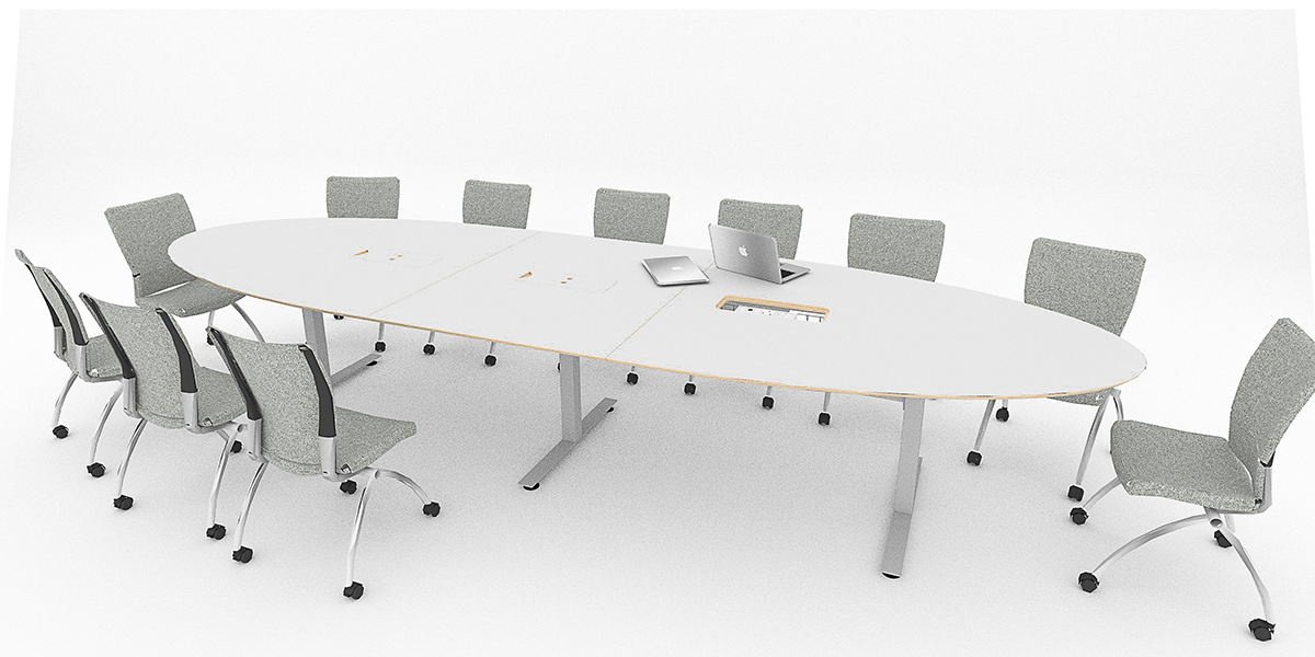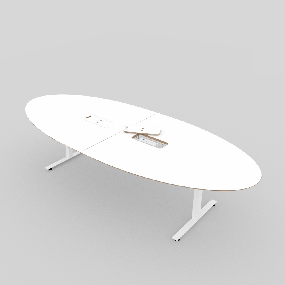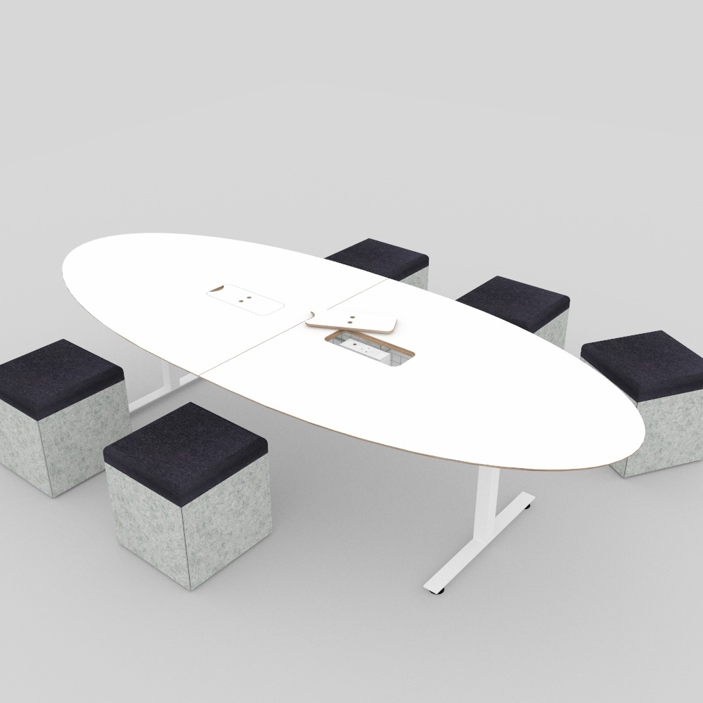 Shell oval meeting tables available in standard High Pressure laminate or Extreme Matt High Pressure Laminate